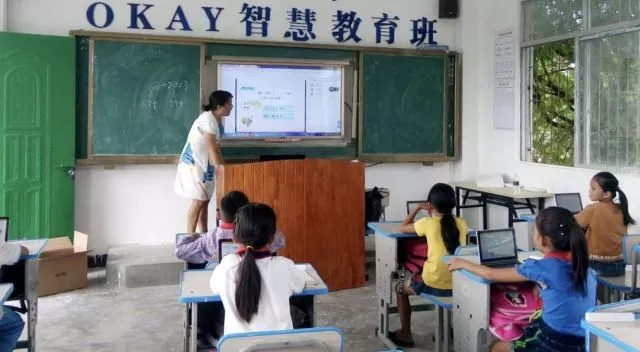 ▲旧村小学老师的智慧学堂, 孩子们真正使用OKAY智慧课堂上课的情景