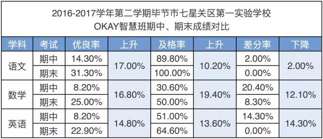 从上表中我们可以看出,七年级7班(OKAY智慧班)学生们的整体进步幅度很大,班级中50%的学生都在年级中较其他学生有所提高,甚至这其中更有28%的学生的进步幅度让我们感到惊喜。学生们的进步恰恰说明了他们的认真与努力,也更离不开老师们的悉心教导。